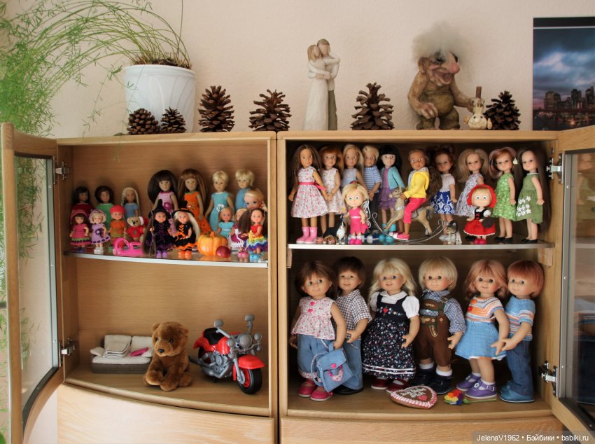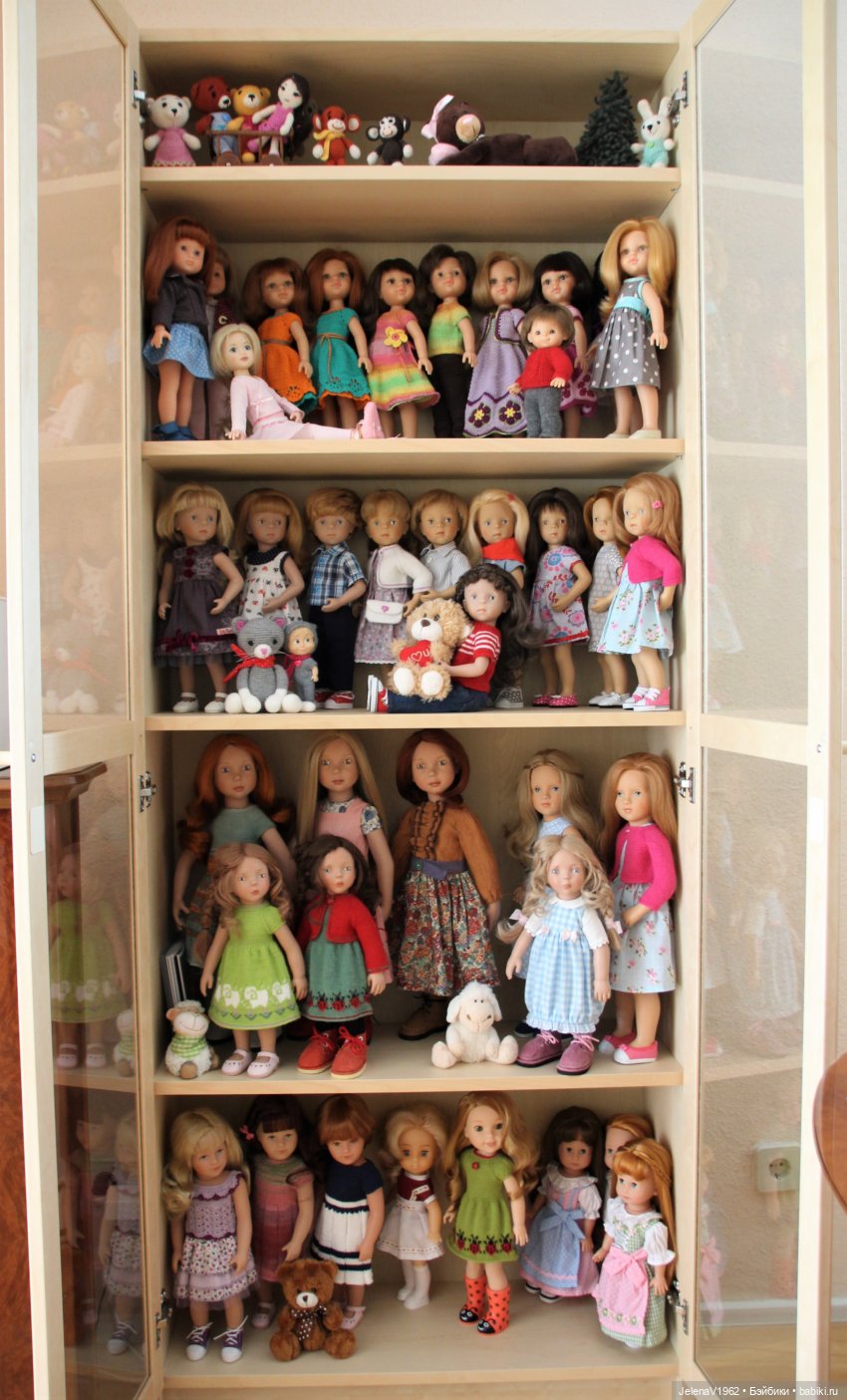 В закрытых шкафах как-то спокойнее. Мне очень жаль было моих малышек Готц, парички от пыли очень сложно очищать.