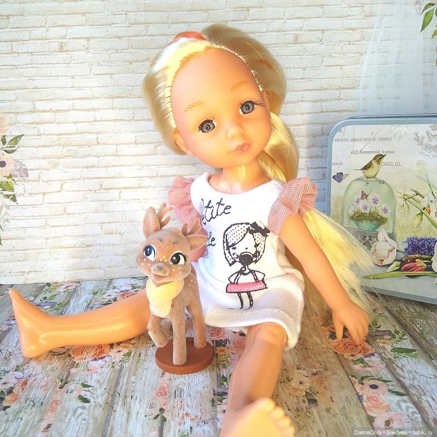 В ногах у девочек сидит китайская Клодин Вульф, купленная в плохом состоянии на нашей городской блошке. Хочется оригинальную Клодин, но эту привела в порядок, причесала две волосинки и дорисовала стершиеся бровки.