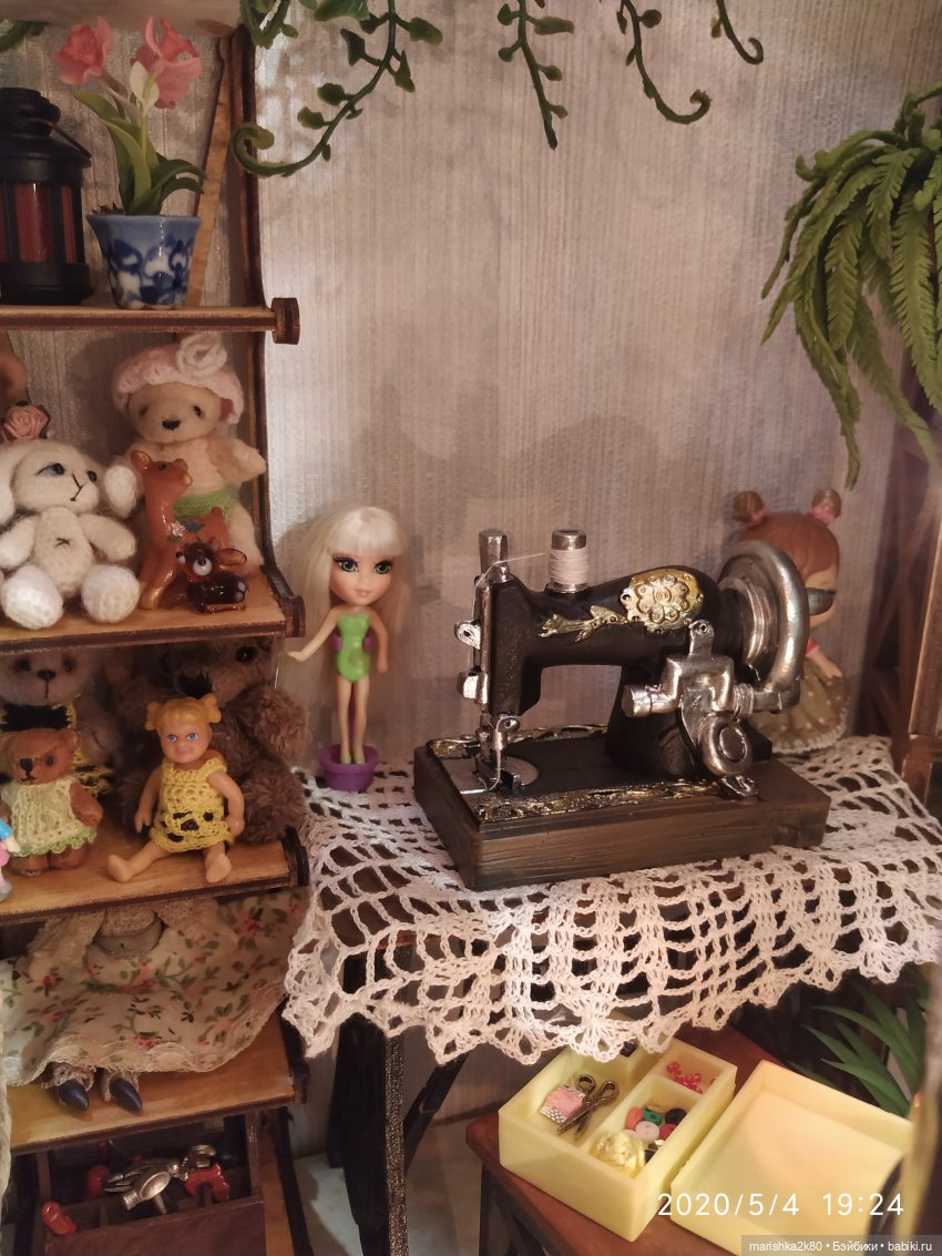 Я уже как-то показывала свой стеллаж с мелкими игрушками и мишками до 7 см. Но сейчас он уже переполняется и поэтому мы прикупили еще один стеллаж. Там осталось три пустые полки. Жду посылку с печатной машинкой, проигрыватель и мелочь. Потом покажемся во всей красе)
