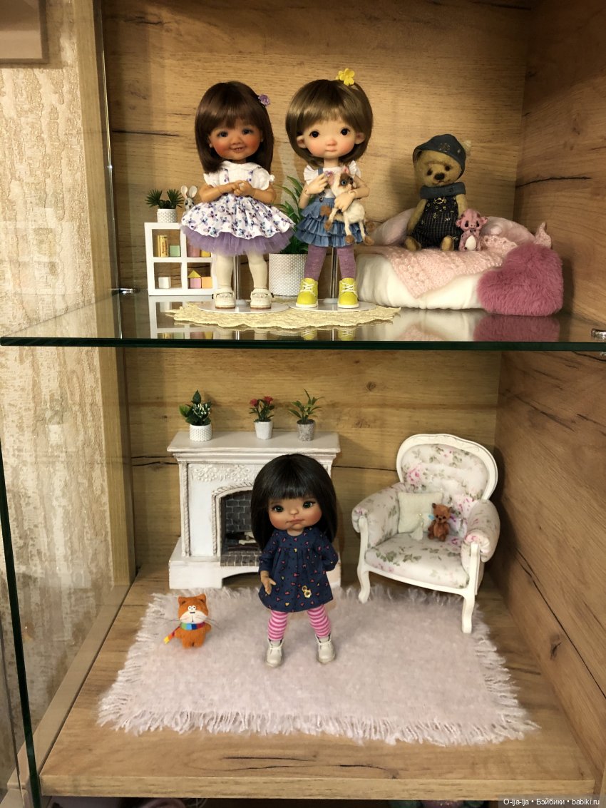Давно ничего не писала здесь. А уже скоро будет 5 лет с тех пор, как я попала на этот замечательный сайт. Попала и пропала)) Зашла, как и многие, совершенно случайно, искала информацию об одной куколке, и погуглив попала на бэйбики)) а теперь не могу оторваться. Мои увлечения за это время были совсем разные, претерпели изменения. Кто то приезжал, с кем то приходилось расставаться. Были и БЖД куколки, и шарнирочки, и авторские, и коллекционные. Но одно стало неизменно, куклы в моем доме стали желанны и любимы. И конечно же начиналось все с очень маленьких кукложителей, которые требовали небольшой уголочек на полочке, и не сильно мазолили глаза моим «неокрепшим» в то время домочадцам. Муж, мама, родственники крутили у виска. Потом все привыкли, и я решилась поселить куколок побольше. И даже уговорила мужа приобрести витрину для моих кукложителей.