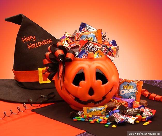 На Хэллоуин веселье- ночь, тыквы, угощенье:))