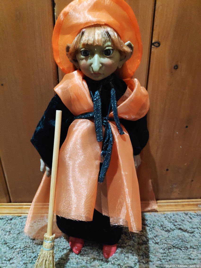 Бабуся на метле была привезена мне подругой из Берлина. Зеленоморденькая в шляпе подарена коллегой после похода в Макдональдс, она имеет колёсики и при движении щелкает челюстью. Та, которая с метлой и горшком была найдена в Киндерсюрпризе опять же подругой и ею же подарена. Глиняная приехала из Пенсильвании. Кем? Правильно, подругой!