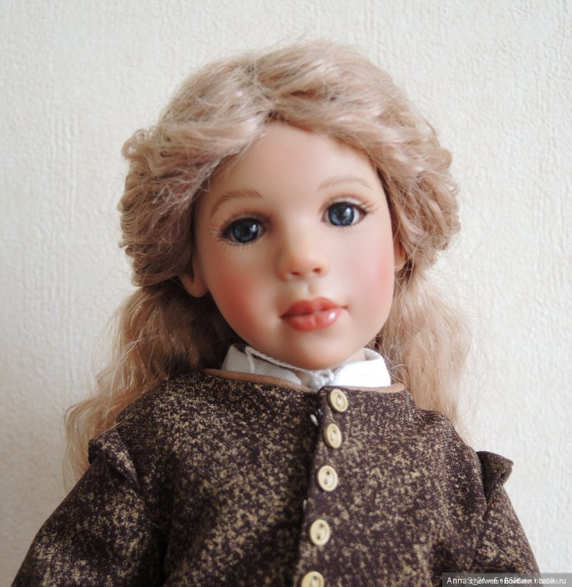 Очень понравилась куколка, маленький рыжик с косичками. Она вот на этом фото, стоит в уголке, в сером свитерочке. Кто она такая, просто чудо рыжее?