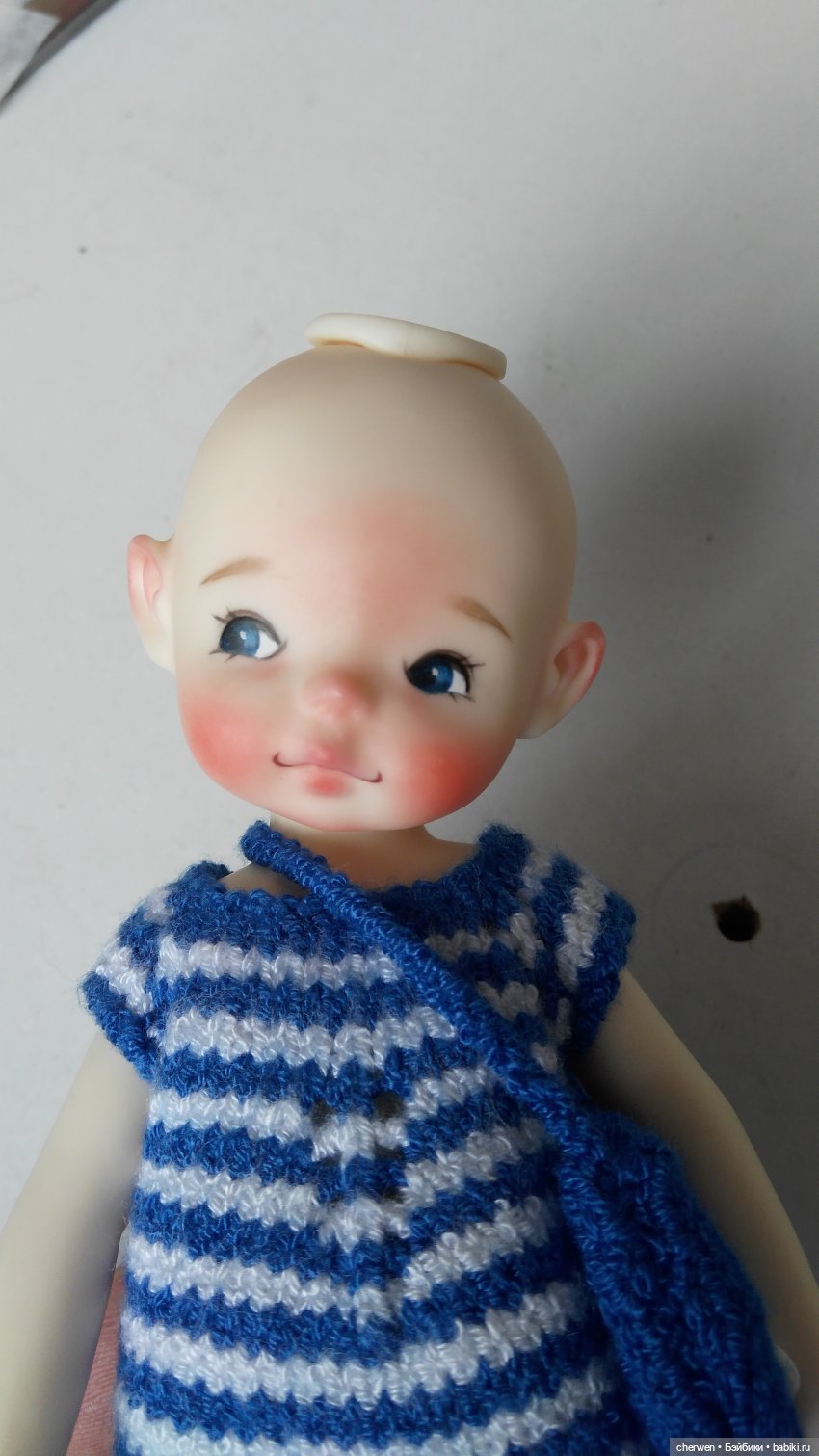 Эта девочка достаточно необычна. Прекрасный скульпт лица, утончëнные руки. Она виниловая, но тело набивное. Я вставила туда скелетный каркас, она стала ещë изящнее. Собираюсь еë переодеть. Она представляется мне героиней многих песен Зои Ященко. А зовут еë Эмма, автор Beverly Warren