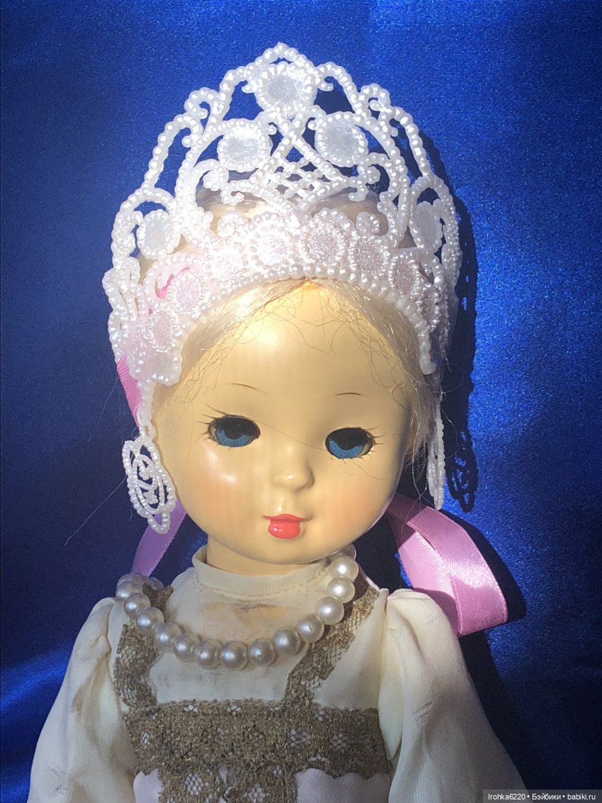 Куколка полностью прессопилочная, бровки и реснички прорисованы в коричневых тонах, как у ранних ивановских куколок.