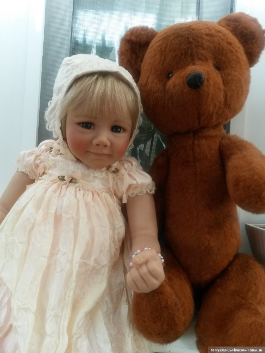 Но тут я пообщалась с одной девушкой с нашего сайта. Она выбирает себе куклу, ну и, естественно, вся в сомнениях. Вот я и вспомнила как сама мучилась делая первые шаги. Не знаю как Вы, а я искала одну «единственную» свою куклу и если бы я купила ее сразу, то, скорее всего, на ней и остановилась бы. Но не судьба))) Я искала куклу-компаньона, которая бы не только красиво стояла или сидела, но которую было бы приятно взять на ручки))) Когда начала просматривать варианты, то, естественно, выделила Gunzel, Treffeisen, FayZah Spanos. Все остальные подтянулись позже))) Тут приоритет за Спанос. Но тогда их в России не было, я покупала их в Америке через посредника. Да и цены(((. Вобщем первыми я купила Адору и малыша Тима в Москве в магазине. Думала утолю жажду, но нет. Это так не работает. Но, с другой стороны, поняла, что не хочу реборна, тогда все сходили с ума по ним, новинка, почти настоящий малыш — хорошо, что не ввязалась в это дело. Меня спас Тим. Он чудесен, я накупила ему одежек, но поняла, что хочу большую девочку-красавицу, так что Адора тоже не покатила -маленькая. Потом была Эльза with Heart & Soul из того же магазина, что и Тим. Я все еще боялась связываться с и-беем, почтой и «заграницей» и получить кота в мешке. Но опять не то… Хотя уже было не так страшно тратить большие деньги на кукол для взрослой тети)))) Потом была Мелани от Brigitte Paetsch — Zapf И это уже было близко, очень близко к мечте))) Потом мне подарили Birte (Варенька) от Hildegard Gunzel из резин. Казалось бы, ну что еще нужно?