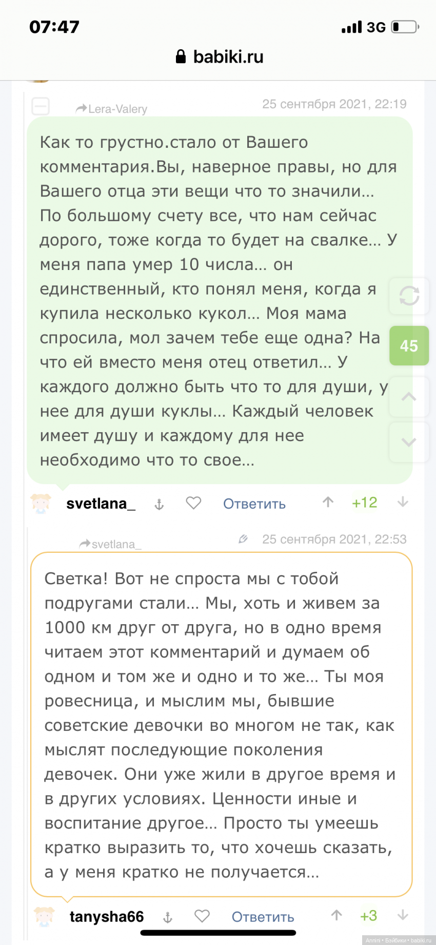 Вы знаете, всегда за громкими лозунгами скрывается одна и та же сущность, а именно деньги. Человек пишет целые простыни комментариев, а сфотографировать и выставить кукол на продажу сил и времени нет. Значит, не особо и нужно. Я люблю, когда люди четко и лаконично выражают свои просьбы, а не упорно талдычат о своей «высокой» миссии на этой Земле. Бред какой-то.
