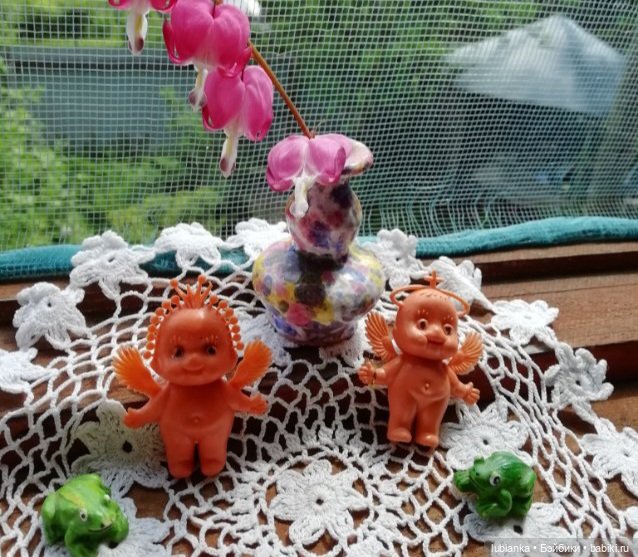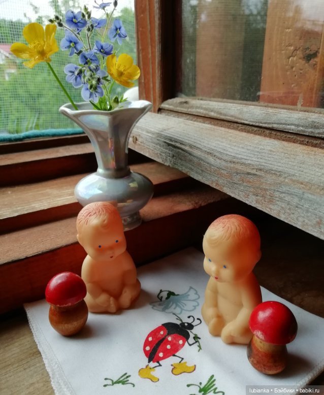 Ну и чуть совсем моих хозяюшек, коим они и покупались)И их самые первые куколки, которые я им купила как только узнала, что они уже есть, девочки мои, но до появления их на свет были ещё долгие 7 месяцев… а кукляшками этими они потом и зубки свои точили(благо не Китай, мягонькие, резиновые,5см), и на море их возили, и в песочек на берегу закапывали, и домики им строили, короче жили полной куклячьей счастливой жизнью)))А потом… потом они мне сказали:«Бабуль, убери, чтоб мы их не потеряли!»Вот и живут они ныне у меня на полке и всё также радуют🤗😊