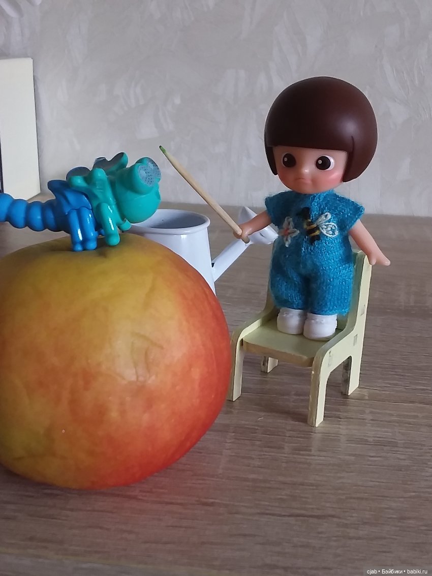 а стрекоза милая, она не хочет есть яблоко, просто пообщаться 😀