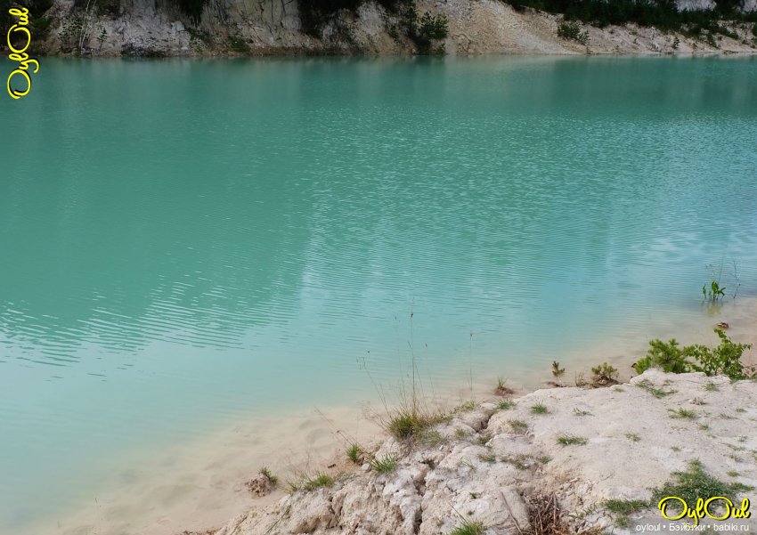 Именно каолин, белая глина и даёт такой невероятный эффект — белые берега плюс бирюзовая вода. Прозрачность воды совсем невелика — от силы 0,5м. И хотя сама по себе вода в карьере бесцветная, просто заметно мутная из-за глинистой взвеси, но смотрится она бирюзовой в толще.