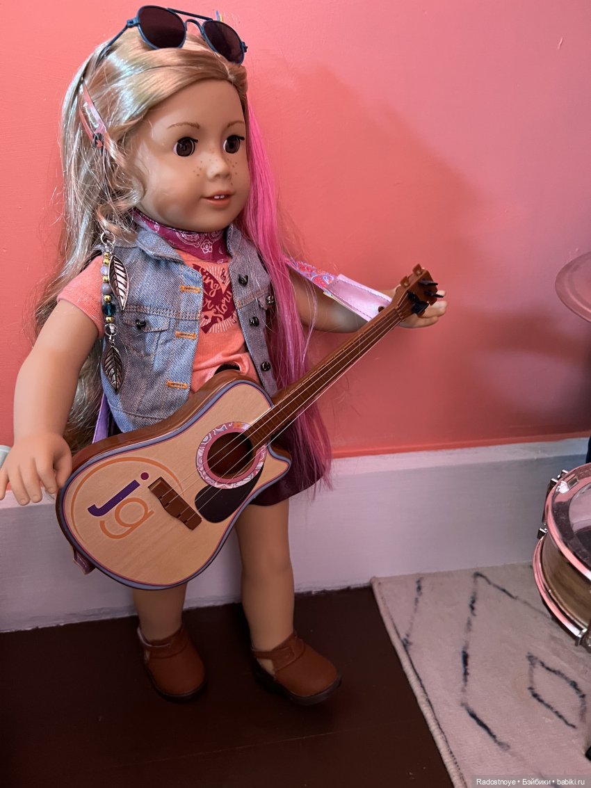 Ребят развлекают игрой на гитаре Тенни Грант от American Girl и Франко от Our Generation.