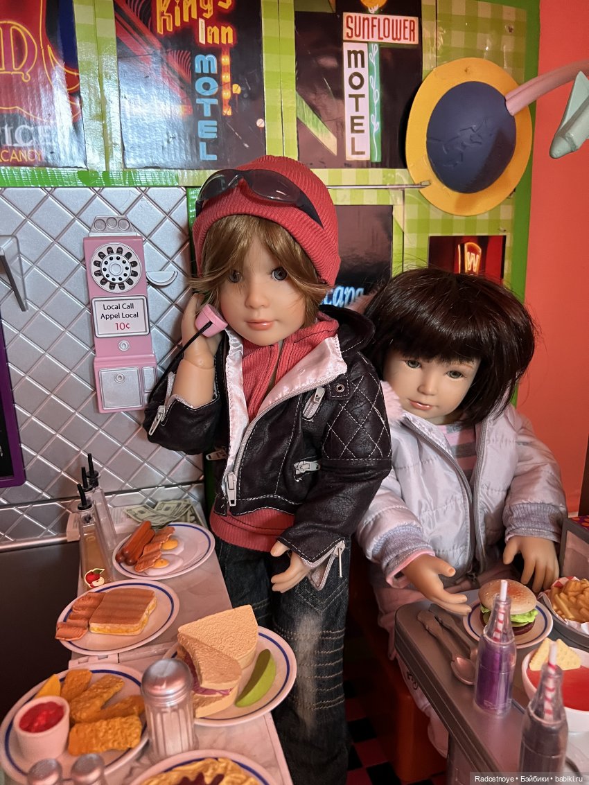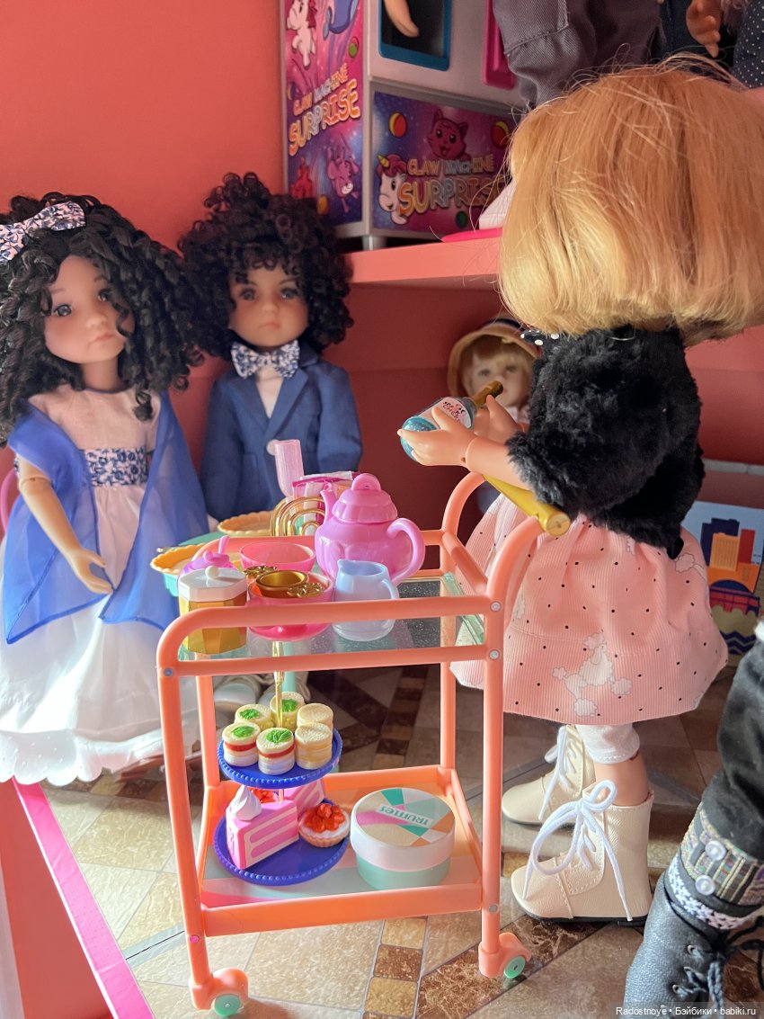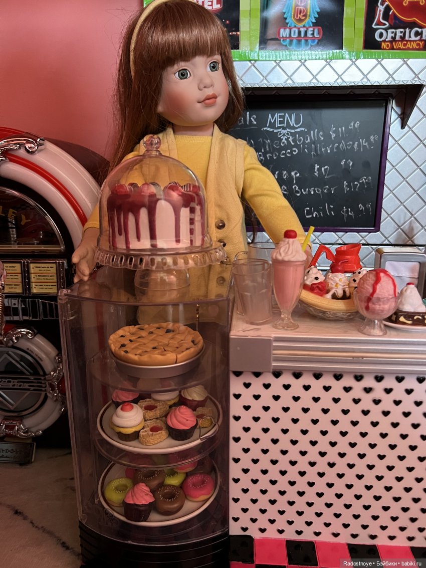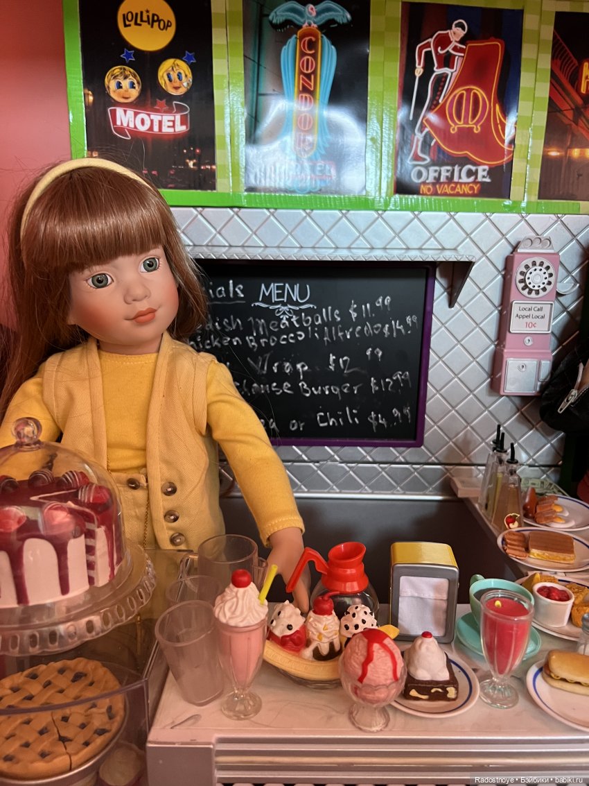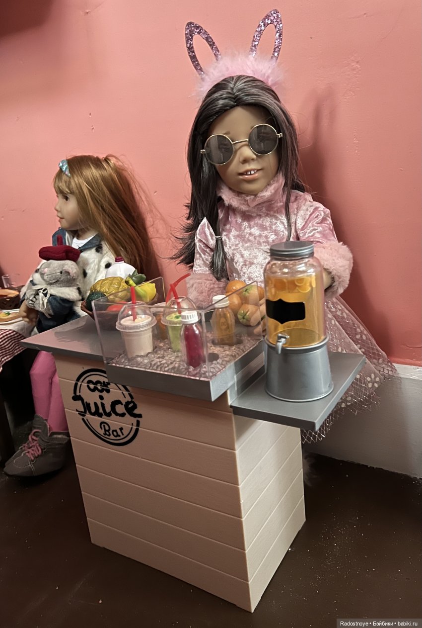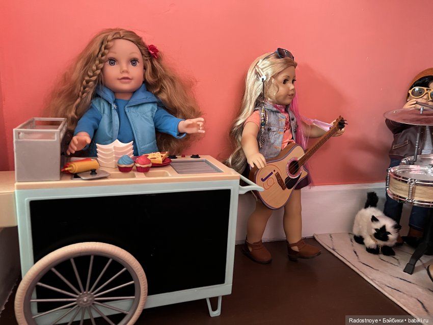 За тележкой для хот-догов стоит Микаэла от Journey Girls.