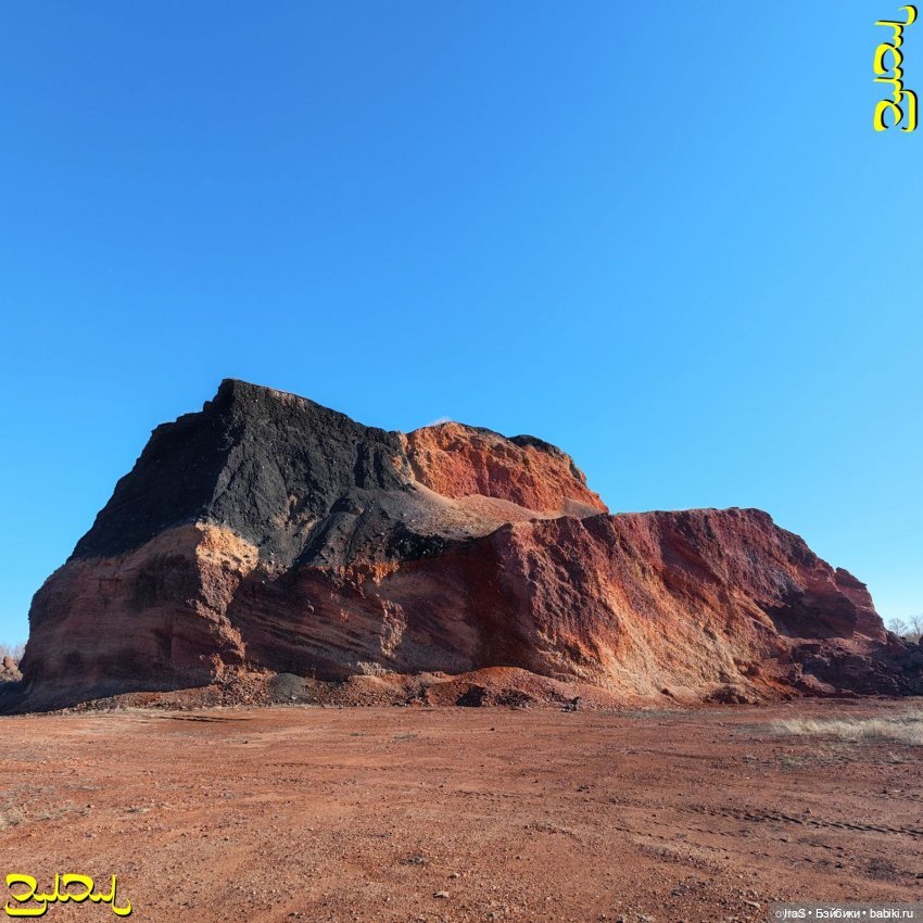 Вот мне тоже понравился этот контраст — синее небо, красный террикон. Я сначала хотела перефотошопить небо в какой-нибудь тоже дикий цвет, а потом не стала: красный и синий — это самое контрастное сочетание.