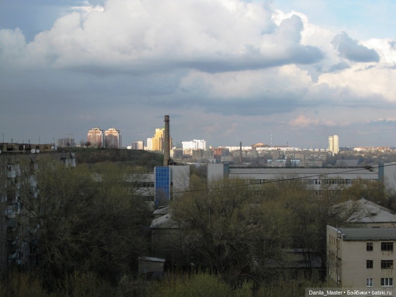 А вот здесь на фоне двух одинаковых высоток слева — как бы растущие непонятно на чём на их фоне деревья. Как бы на плоском холме))) Это они — деревья — растут на вершине срытого частично террикона.