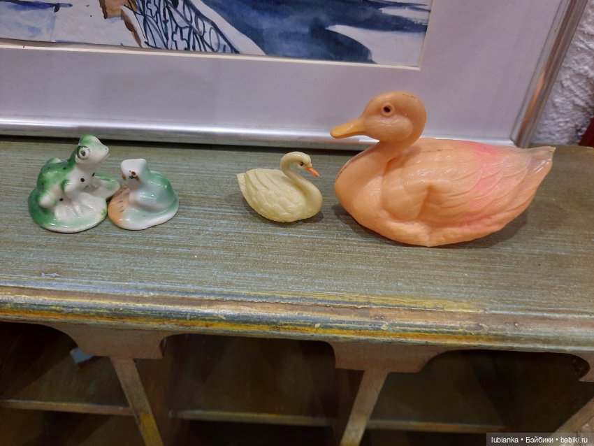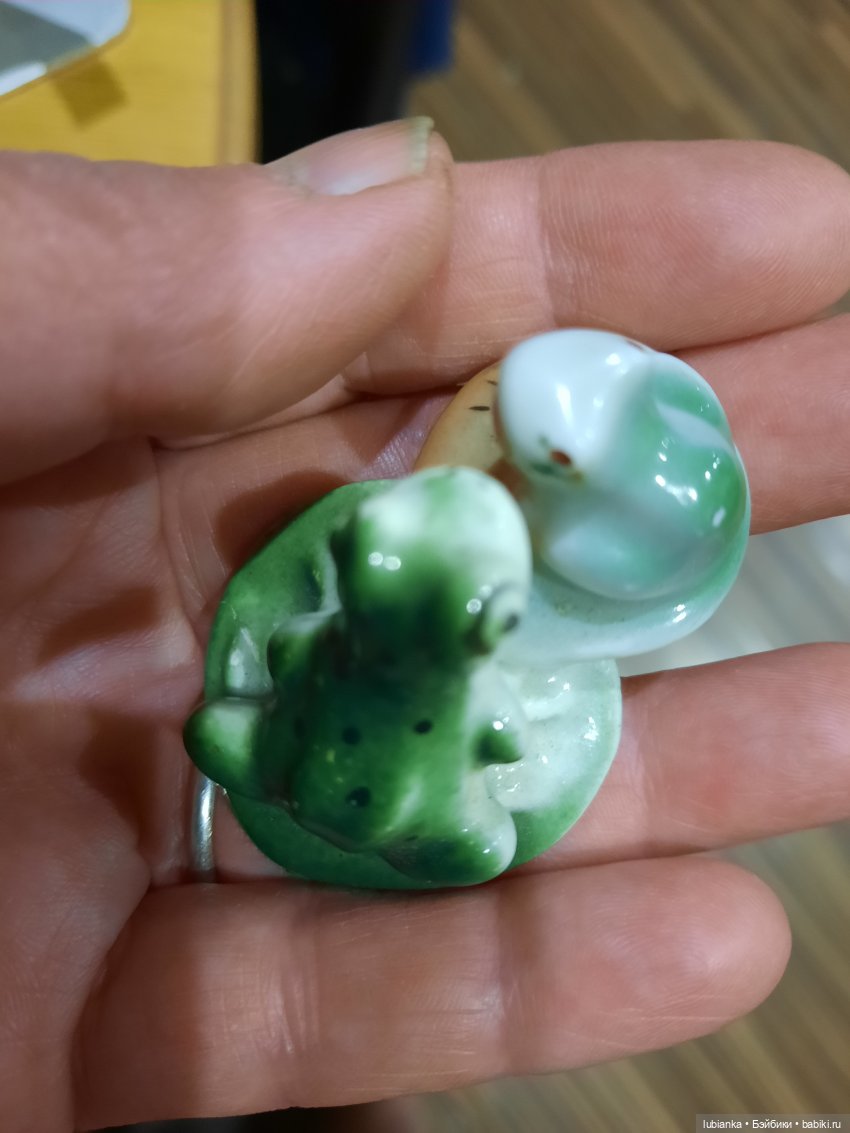 Мне этот дуэтик подарила вдова советского поэта Степана Щипачёва, узнав мою симпатию к лягушкам))Вынула из своего серванта и подарила, они рядом стояли там у неё.Я ничего о них не знала.Думала, что они-одно целое-мать и дитя