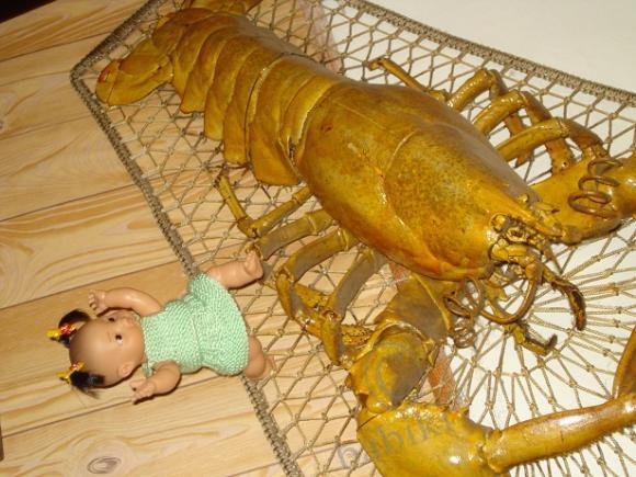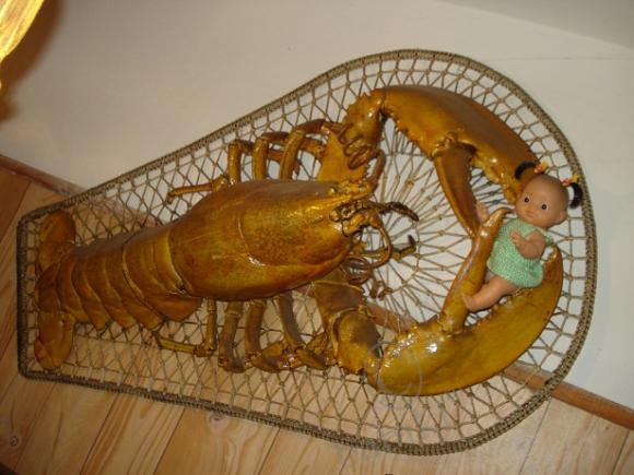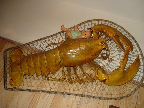 скажу по секрету — он когда-то был живой, но его поймали (случайно попал в сети), выпотрошили, дедушка сплел сетку и уже много лет это чудо живет у нас