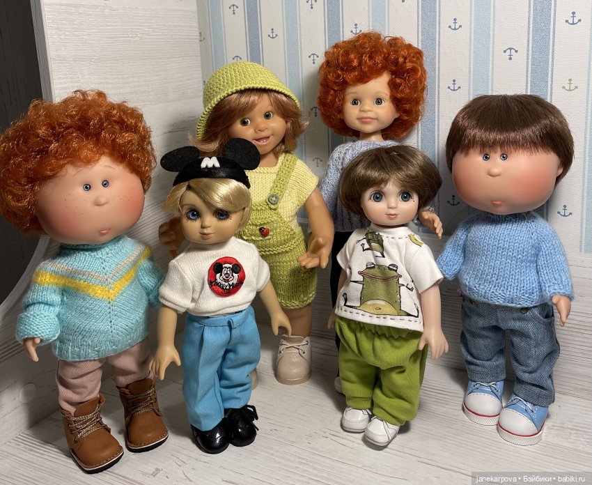 Но не фабричный, а доморощенный. Стригла сама. Потом Илья от Юлечки Камазик, светлая ей память. Сколько у меня мальчишек? Целая ватага разной величины, но одно из правил нашей кукло-семейки — все должны вполне естественно «взаимодействовать». У нас нет явных пар, но есть «родственники»! Все дети, но есть и подростки. Куклы у меня самые простые, игровые. Два мальчугана, надеюсь пока, большие, но не выше 50 см. Один 45, ватага 34см, кучка " горошинок" в 20-21-23. Самые маленькие -11-14. Самые красивые мальчики, как правило и к сожалению, начинаются с «за 60 см». А я стойко держу оборону, не выше 50, но готова сделать исключение для одного юного мужчины высотой 54 см! Рон Уизли, мы Вас очень ждем, нам Вас невероятно не хватает! Надо писать топик, но он не пишется. Не буду больше утомлять своими фото, но я, как и Вы, очень люблю мальчишек!