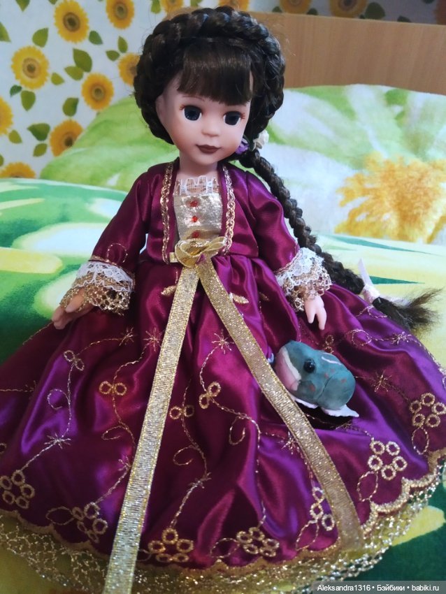 А кто такая у вас черноглазая девочка в фиолетовом длинном платье, черная коса вокруг головы и сбоку свисает? Очень красивая она.