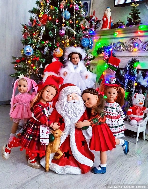 — Давайте еще раз нашей кукольной семьей сфотографируемся около елочки и поздравим всех с Новым годом! Пусть он будет для всех нас спокойным и радостным, и самым добрым на свете!