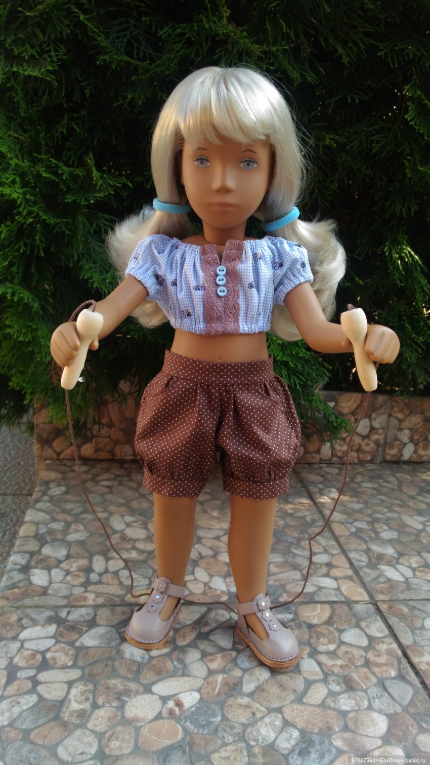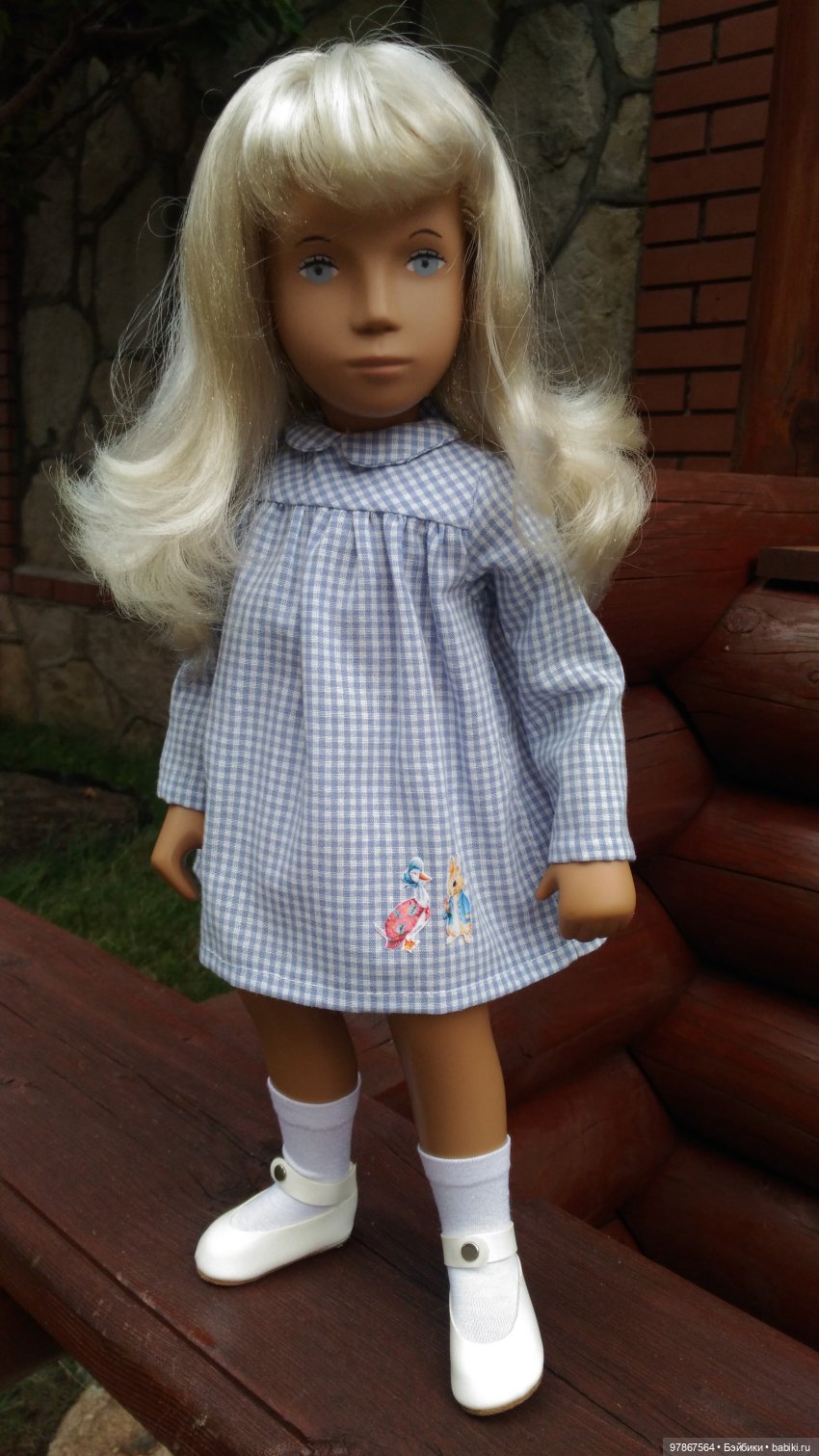 Кстати у меня именно такая Саша тоже живёт, но у нее нет таких прекрасных зайчика и гуся на платишке. Завидуем Вашим модницам! Как им повезло с такой заботливой хозяюшкой.