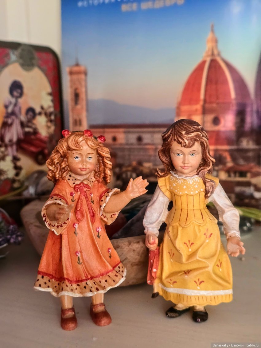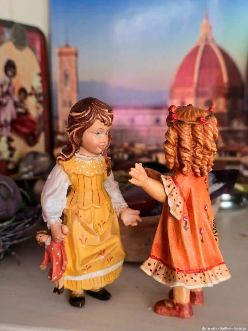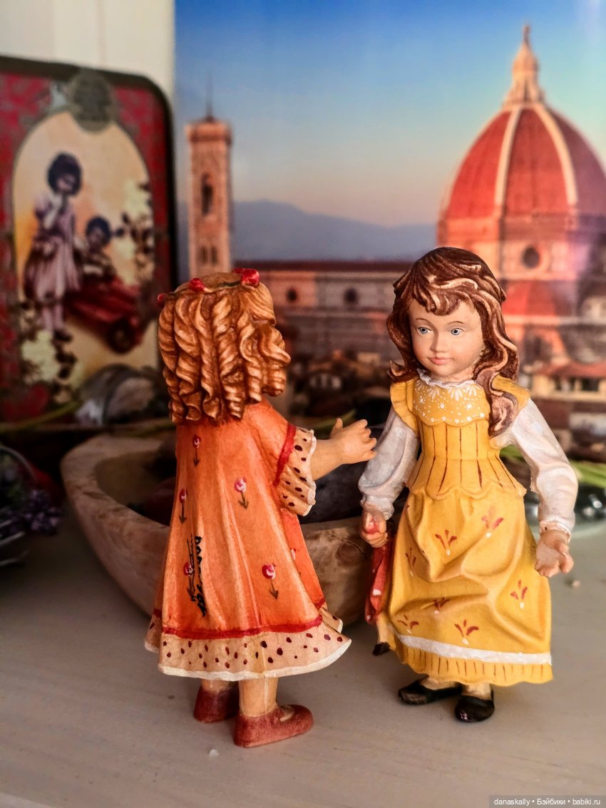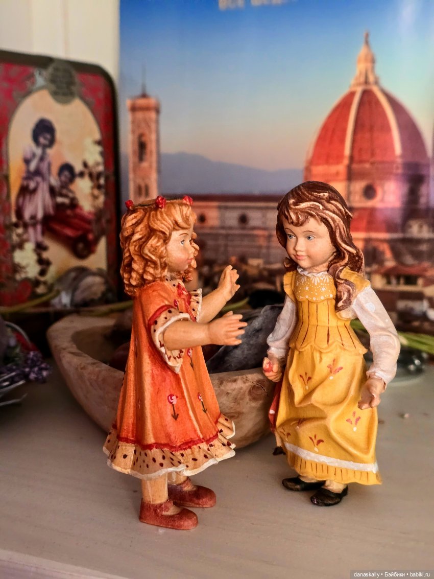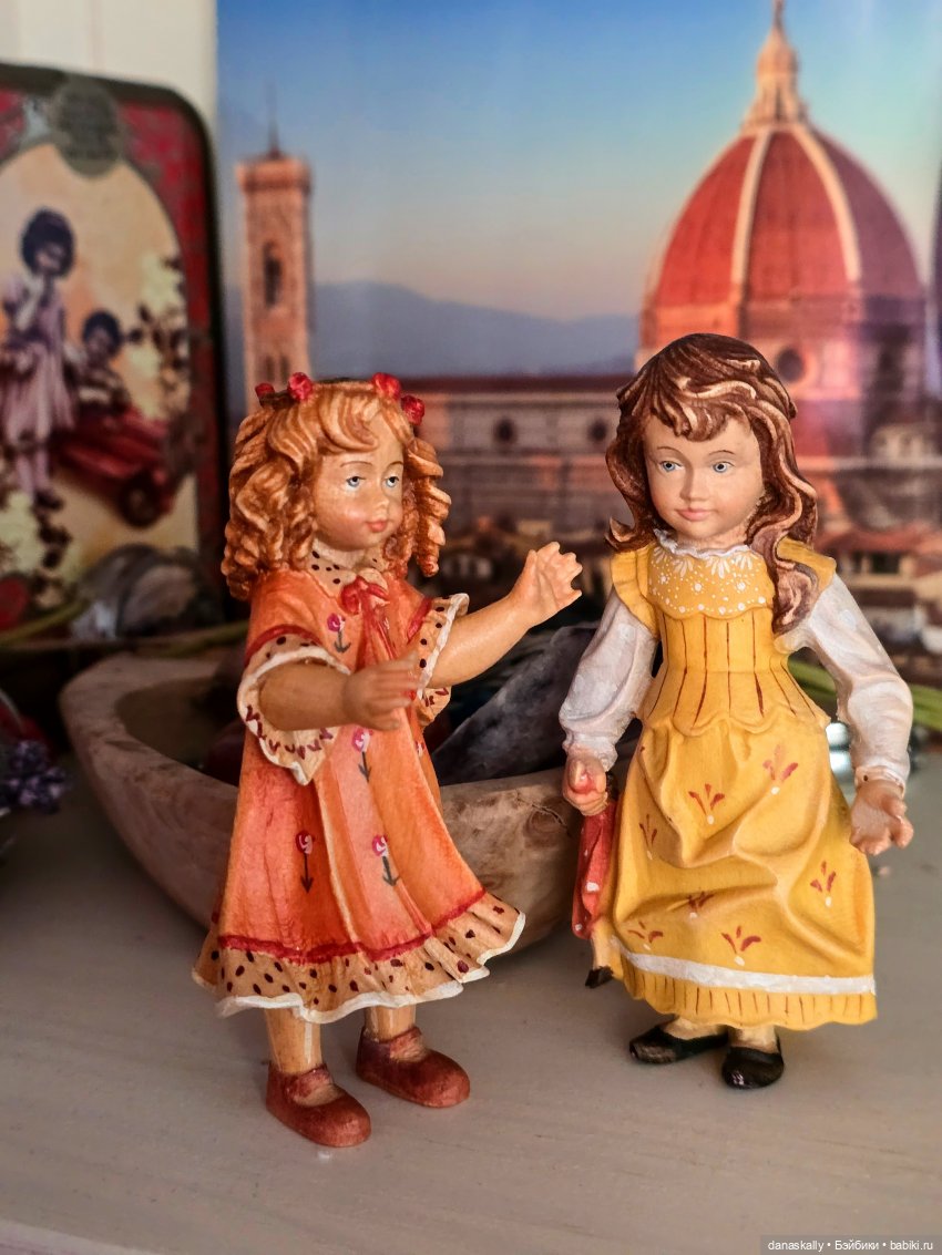 Здравствуйте, друзья! Я очень люблю деревянные куклы и фигурки ручной работы. Недавно у меня на полочке появились две девочки. Они встретились, болтают и не обращают на меня внимания. История этой удивительной фабрики достойна отдельного рассказа. Я же хочу просто показать двух девочек, Елену и Элизабет.