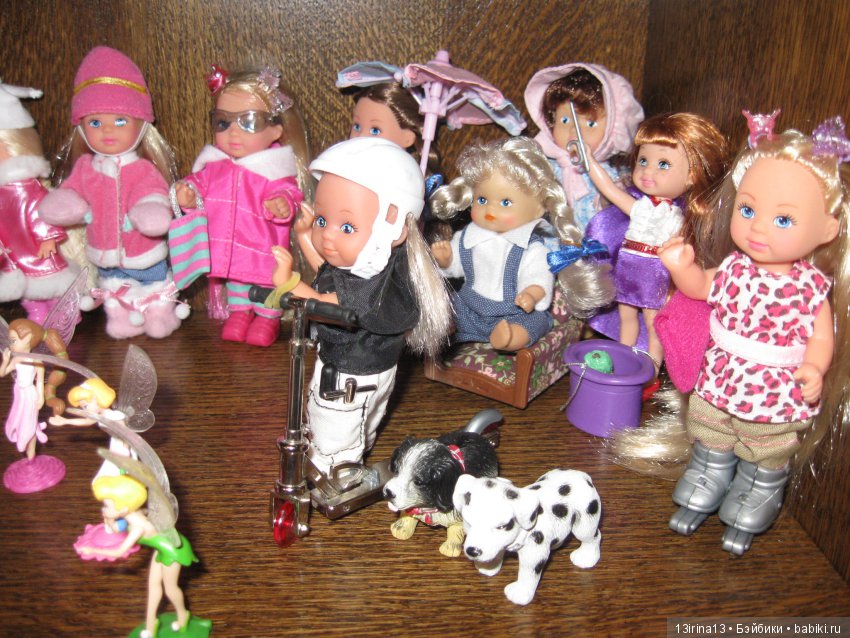 Если начинать с самой большой стайки кукол, типа Еви, куда входят помимо самих Еви Кики, Келли, Baby world и Полинки, то таковых осталась великолепная семерка