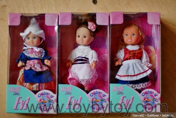 Несколько географических Еви из старой серии Дети мира (той, в которой куколки продавались поштучно в индивидуальных коробочках).