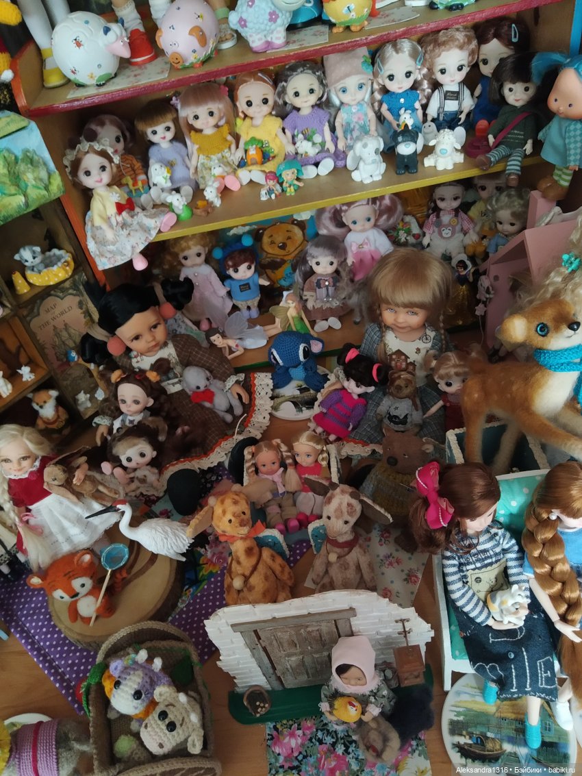 … А вообще, у меня не только мелкие живут, конечно ) Но там не коллекция в том смысле, как с мини куклами. Никаких классификаций, идентификаций, подборок. Никаких «собери всю серию» ))) Никаких жёстких ограничений по формату. Всё по большой симпатии и только. Эти два мира у меня совсем не пересекаются — ни на фото, ни в витринах.