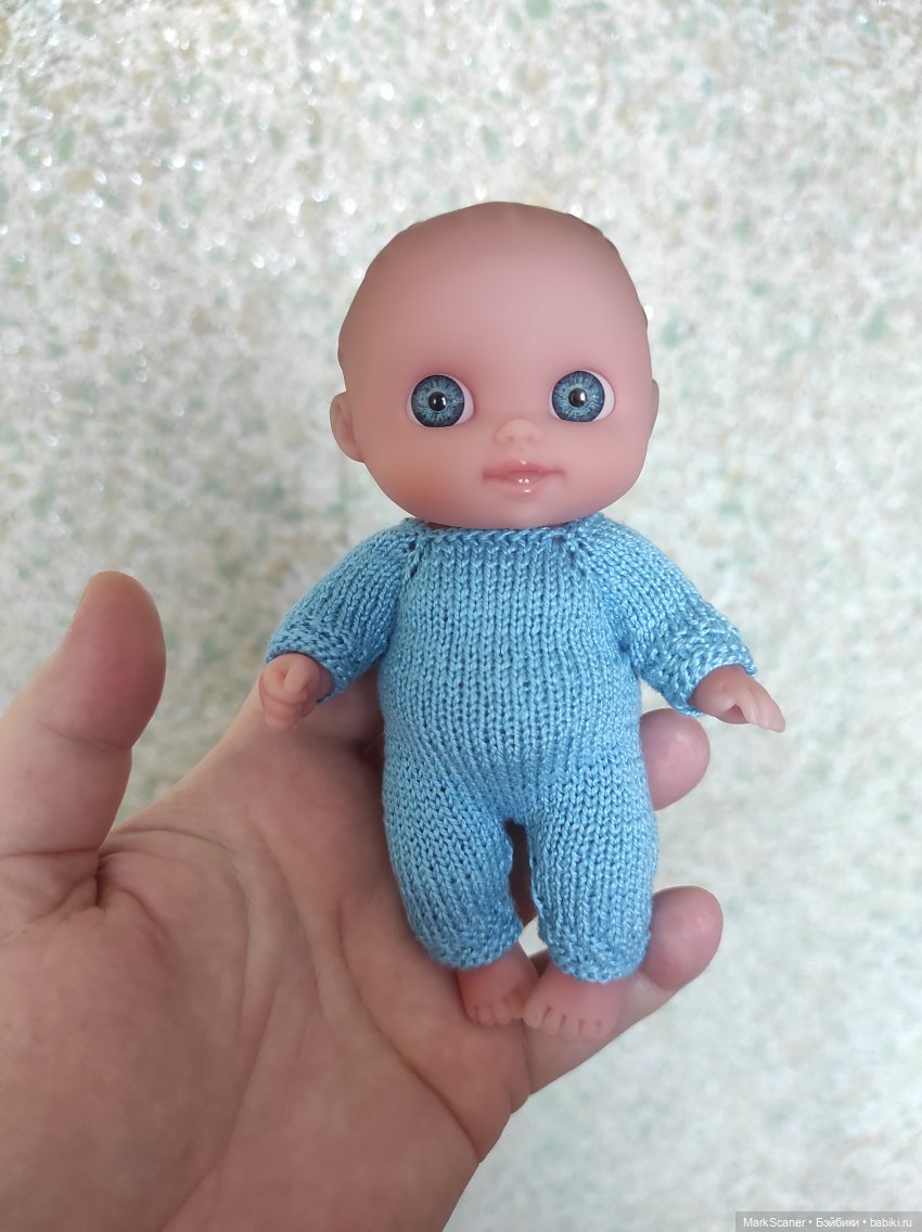 На всех попавшихся фото пупсята на телах из мягкого ПВХ, это видно. А у меня ещё вот такие живут: конечности твёрдый винил, туловище не полиэтилен, как у мягких, а жесткий прочный пластик. Когда-нибудь и им фото в коробке отыщется.