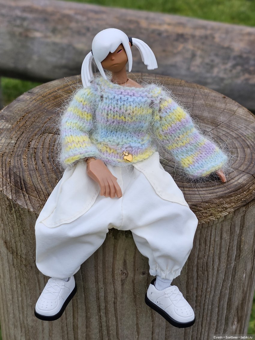 Уже в Москве я заказала ей её кроссовки с носками (хотя это был тот ещё квест. Мне показалось, что саму куклу без кроссовок купить легче, чем кроссовки для нее). Её родные штаны мне так и не попались так что я связала ей юбчонку, что бы девочка не сидела полураздетая и еще с расчетом на то, что когда их получу будет тепло и я смогу ее сфотографировать.