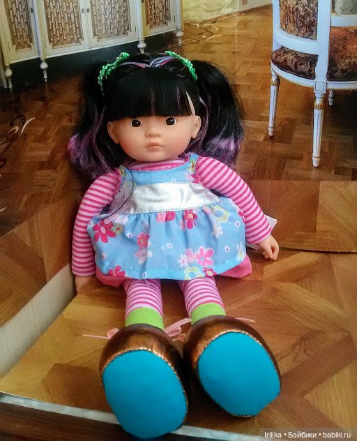 Моё мнение: куклы очень яркие и красивые, мне очень понравились на фото. Но себе такую покупать не буду, с ней сложновато будет играть. Переодевать сложно из-за мягкого тела, если вообще возможно — вдруг одежда несъемная? Ботинки пришиты… Позы не держат тоже.