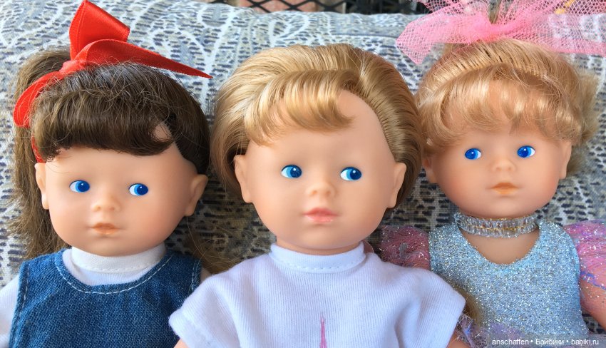Редкую Докторшу младшей дочери мы искали несколько лет, и ведь нашли! То же и с кучерявой малышкой, смотрела в каталоге, но даже не искала, не надеялась. Третья дочкина куколка — Девочка с Красным Бантом — тоже нечасто встречается, это ведь игровушка аж 1999 года, согласитесь, не каждая куколка доживет до таких лет в крепких девичьих руках))