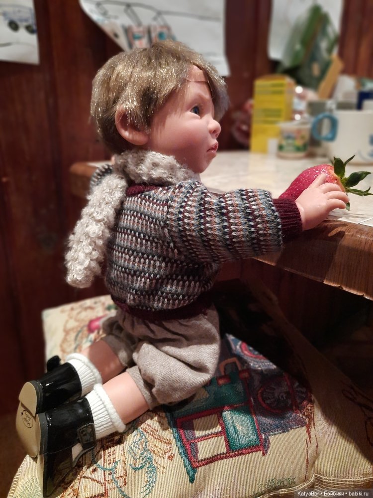 Малыш ростом 28 см, мягконабивной, ароматизированный, с очаровательной улыбкой, которая выглядит то хитрой усмешкой, то застенчивой улыбкой. Характерный и очень необычный мальчуган занял своё место в нашем сердце! Возможно, он понравится и Вам.
