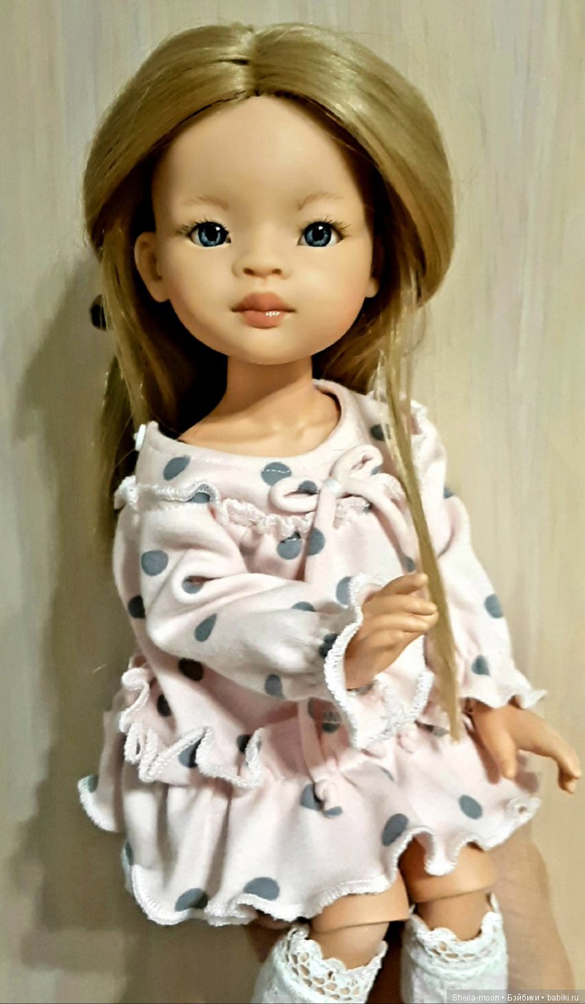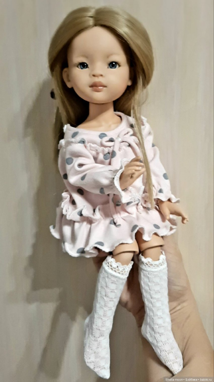Сидит куколка на полочке, а я прохожу мимо и не насмоитрюсь на нее, обязательно дотронусь, поглажу, поправлю что-то. И коленочки совсем мне не мешают. Шея даа, нужно что то придумать)). Зато ручки, попка, косточки и ямочки под шейкой, и все другое такое сладенькое. Наверно это любовь)