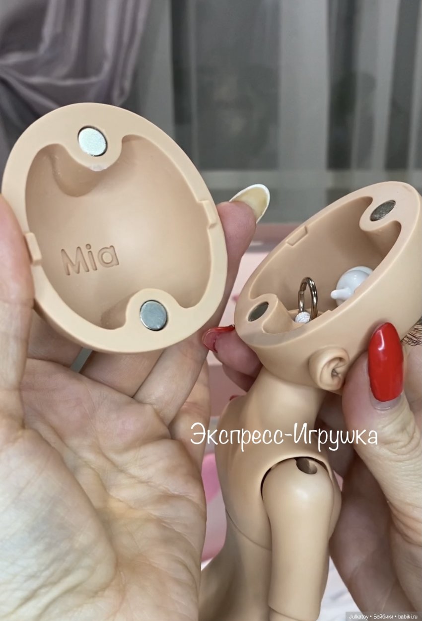 Миа очень красивая, нежная, с подробной детализацией и мейком. Глазки вставные акриловые, можно легко поменять. Для этого нужно просто открыть верхнюю часть головы, которая удерживается магнитами.