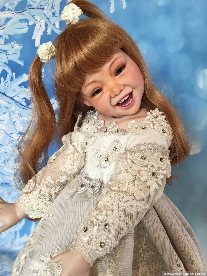 Джоечка, которую я вам сегодня показываю, девочка не обычная, у неё авторская роспись лица, к великому сожалению мастер не дала согласие на публикацию ее имени, но хочу сказать что это мастер своего дела, я очень ей благодарна, за Джой. Низкий поклон! Потрясающе живое лицо, глазки стекло, ресницы наклеены в два ряда, не обычно, парик натуральный, наряд как всегда исполнен мной. Хочу заметить, платье выполнено из нежнейшего кружева и расшито камнями сваровски.