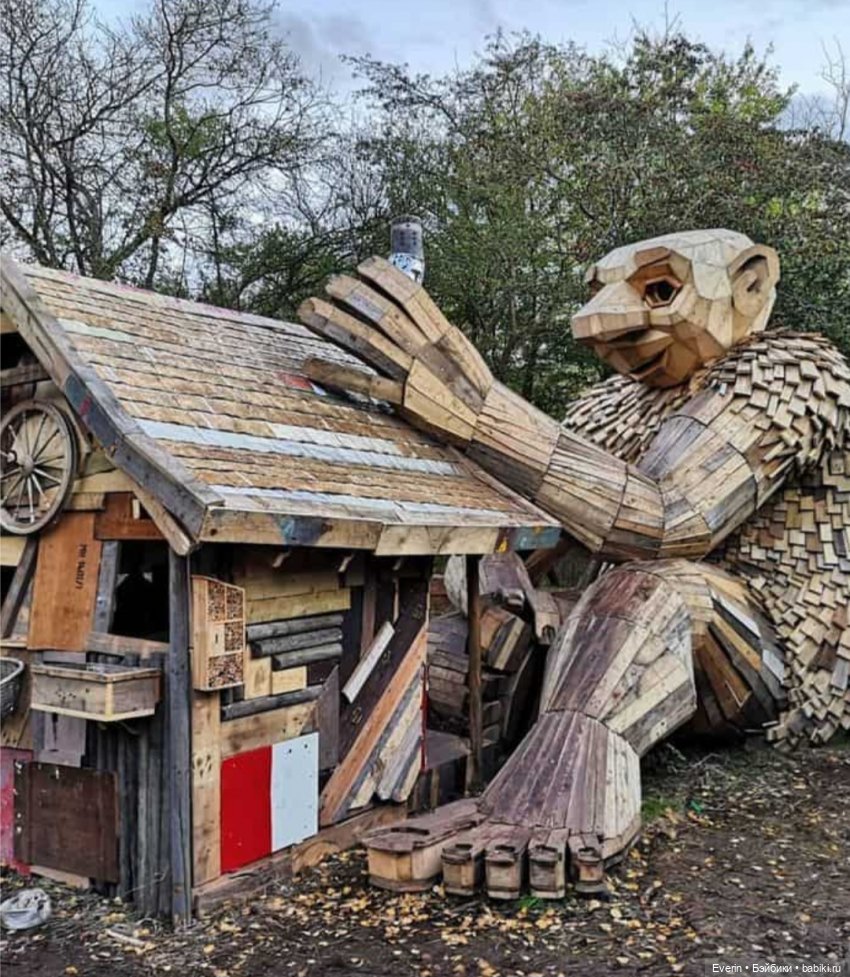Этих огромных троллей сделал датский художник и скульптор Томас Дамбо. Thomas Dambo создает свои талантливые произведения из деревянного вторсырья.