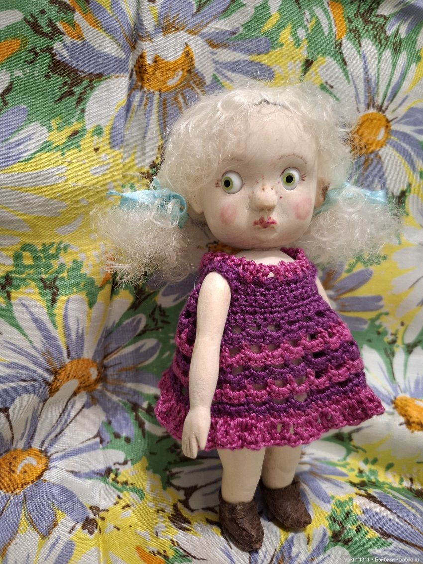 Добрый вечер, дорогие друзья. Представляю Вам свою новую работу-пупса Клавочку.Рост ее всего 17см. Изготовлена, как всегда, из дерева. Получилась симпатяшка, удивленная, довольно упитанная. Глазки вставные, зеленые.