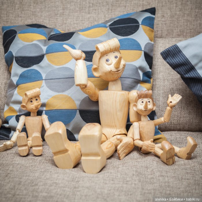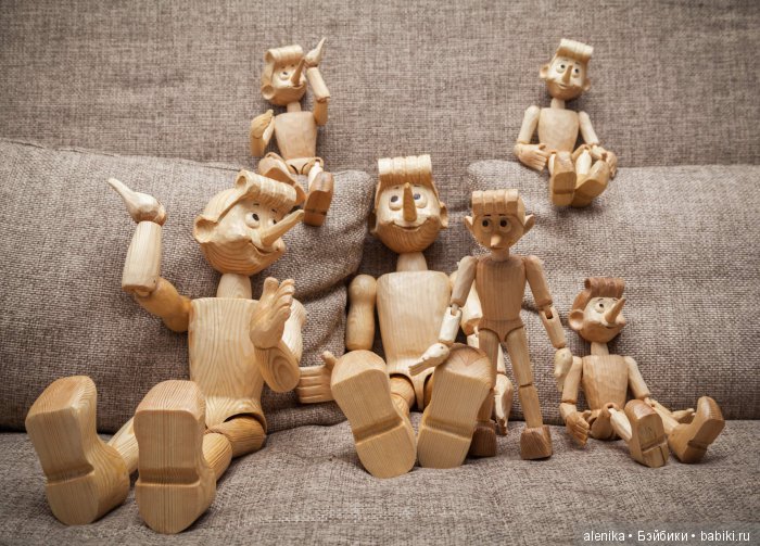 Самый популярных и, похоже, самый любимый персонаж мастера – кукла из дерева Буратино. Удивительной особенностью всех изделий Станислава является их улыбающееся лицо. Дерябин признается, что долго отрабатывал и понимал, как на деревянном бруске рождается улыбка. Излюбленным моментом в производстве изделий является работа над лицом. Резку остальных деталей мастер считает рутинным занятием.