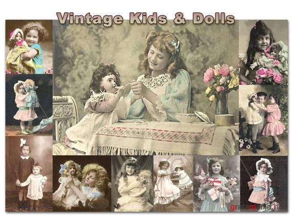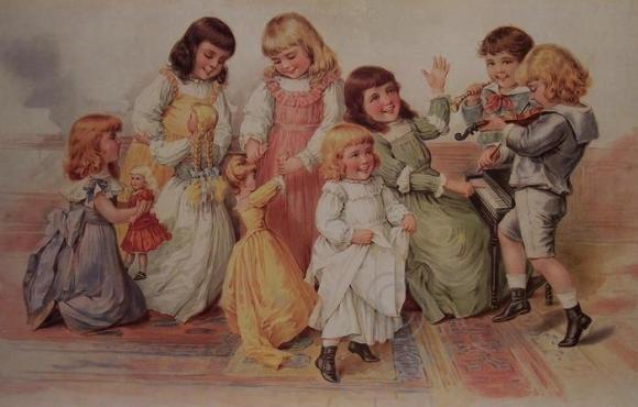 Красивые винтажные открытки детей с игрушками и без