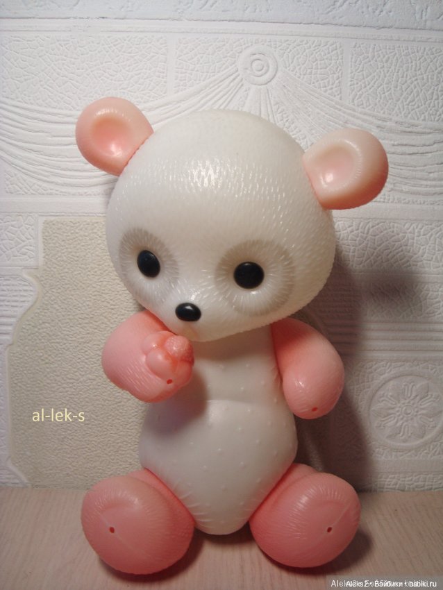 Когда-то, примерно в 87 году у нас был огромный мохнатый розовый медведь см 60 такого же качества, как на первом фото средний волосатый мишка. Только лапы у него были поворотные, как у кукол. Подруга уезжала и оставила его мне. А муж тогда увлекался радиотехникой, и по схеме из книжки собрал схему, которую мы вставили в медведя, чтоб медведь мычал, рычал и плакал при разном положении его тела. Да, ещё и соску ему сделали — замолкал от неё, выключателем была. Потом его передарили. Очень уж большой и тяжелый был — набит ватой. Этот мохнатый мишка на фотографии думаю тоже того выпуска. Значит ему лет 35!