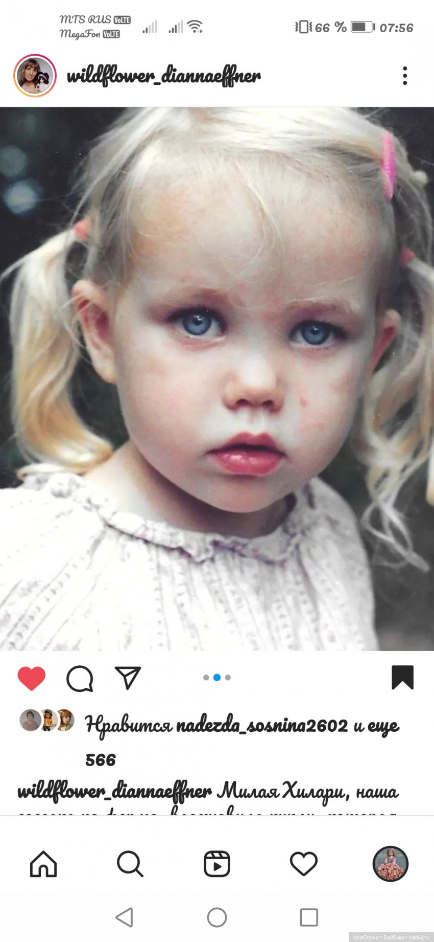 Я недавно видела в Инстаграме фото девочки, которая послужила прототипом для создания Хилари. Фото взято из интернета.