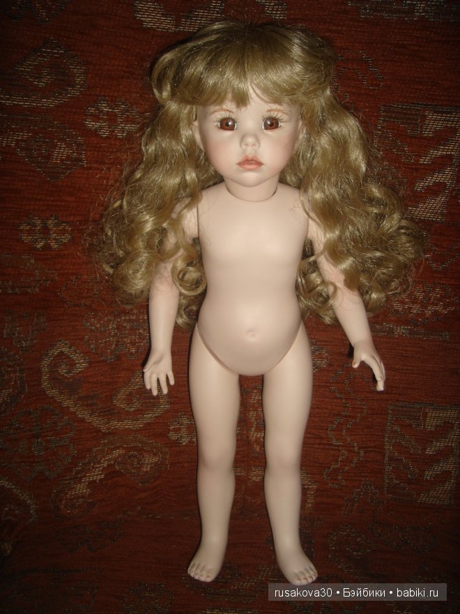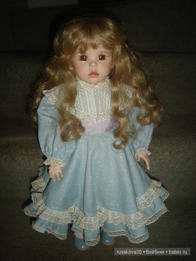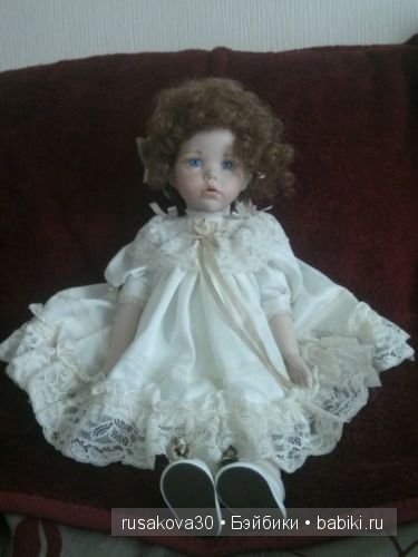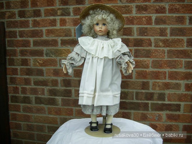 Другая красавица, зову её младшей сестренкой, ростом 60 см. Девочка полностью выполнена из фарфора. Хотелось бы отметить, что эта кукла изготовлена Дианой Эффнер в соавторстве с Линдой Рик. Куколка также 1987 года, но собрана была в 1993. За нее благодарю Pokupatel.