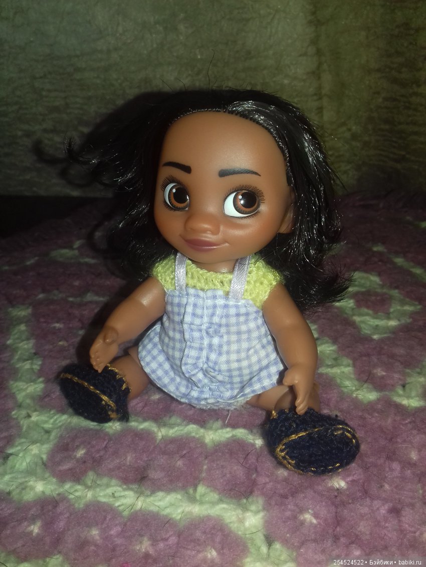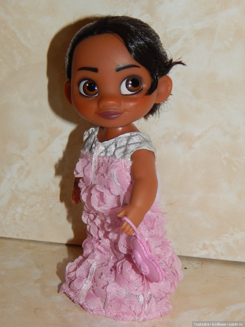 Моана из всех принцесс Диснея имеет самый скромный наряд. Ну а что — когда живешь в тропическом раю, повязки из листьев и бус вполне достаточно :) Но, как любой девочке, ей тоже хочется красивое платье, особенно когда подружки на полочке стоят такие нарядные, а ты торчишь ногами кверху из корзинки игрушек в одних трусах. Непорядок!