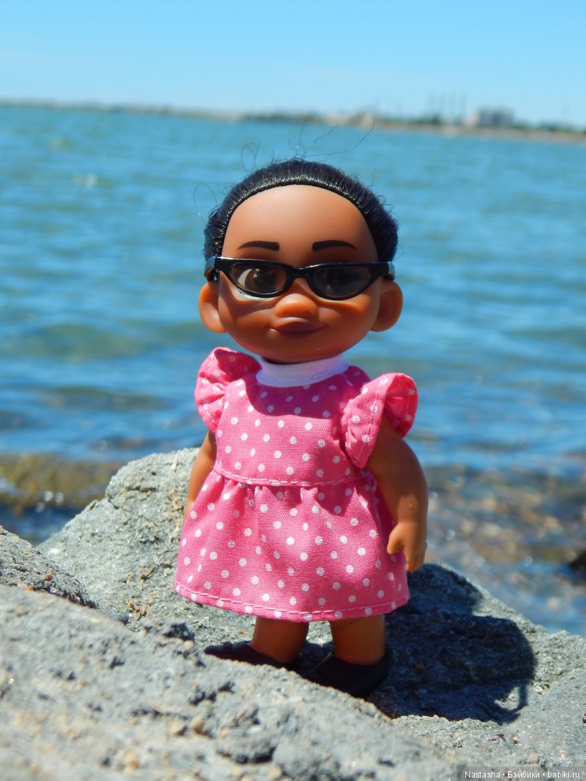 И я принялась за гардероб. Вязать на куколок даже меньше размером мне уже приходилось, но крючком. А тут захотелось попробовать спицы. На удивление, пряжа СОСО и спицы двоечки вполне себе дружат. Платье вяжется очень быстро, я в порыве вдохновения связала аж три штуки разных цветов. Описание выложу чуть позже, а этот топик про то, как мы выгуливали эти платья в «большом» мире.