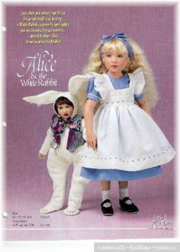 Я бы поступила так. Купила бы классного кролика в образе из сказки. А образ Алисы можно создать из любой куколки. У Вас очень большая коллекция кукол. Наряд Алисы очень простой и Вы, наверняка, сможете его сшить.