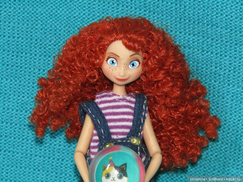 В голубых трусиках ножки потоньше, и коленочки рельефнее! Ещё момент — у Мериды болталась левая рука в локте — это бывает у шарниров такого типа, головка штырька шарнира отлита крупновато, отверстие под неё широкое, и сам штырёк оказался тоньше, и рука не выпадает совсем, но висит на штырьке, сгибание норм, а повороты произвольные, ибо болтается. Повторюсь, у шарниров такого типа это бывает. Что делать? Капельку клея момент-кристалл или силиконового герметика капнуть на гладкую чистую поверхность, подсушить несколько секунд, взять на кончик зубочистки крупинку величиной в четверть просяного зёрнышка и упихать кончиком зубочистки в шарнироприёмник — просто уплотнить штырёк. Почему момент-кристалл или силикон — потому что они эластичные и не мешают движению. Так что у кого попадётся такой дефект — не впадайте в панику. Вот. Ножки — мягкая-мягкая резина, переодеть штаны — реальный квест! Дизайнер Балда думает выкройки. И ещё — наверняка такая резина легко окрашивается, поэтому следим за тканями и нитками, чтобы не линяли! Обувь подошла от Челси