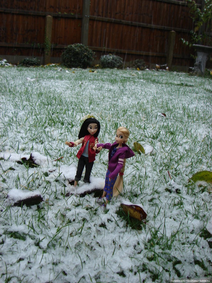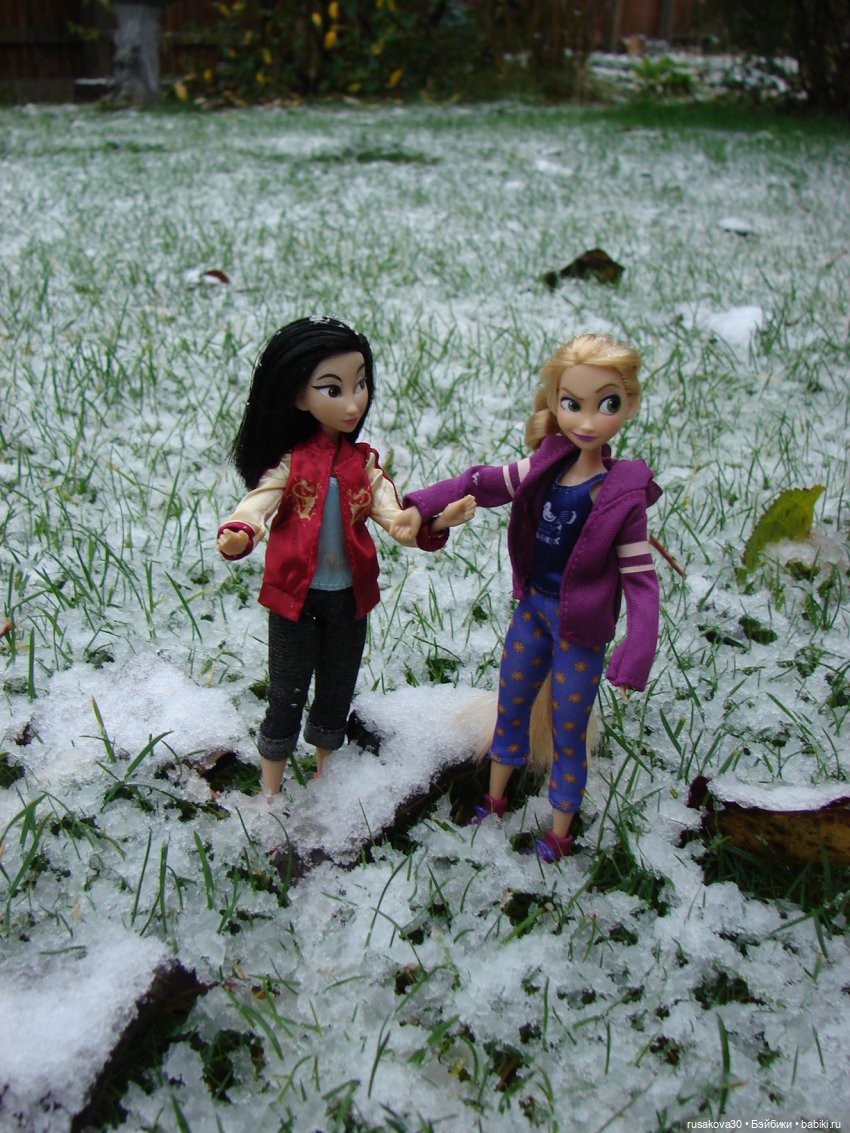 Но Мулан и Рапунцель все таки успели побегать по первому снежку.