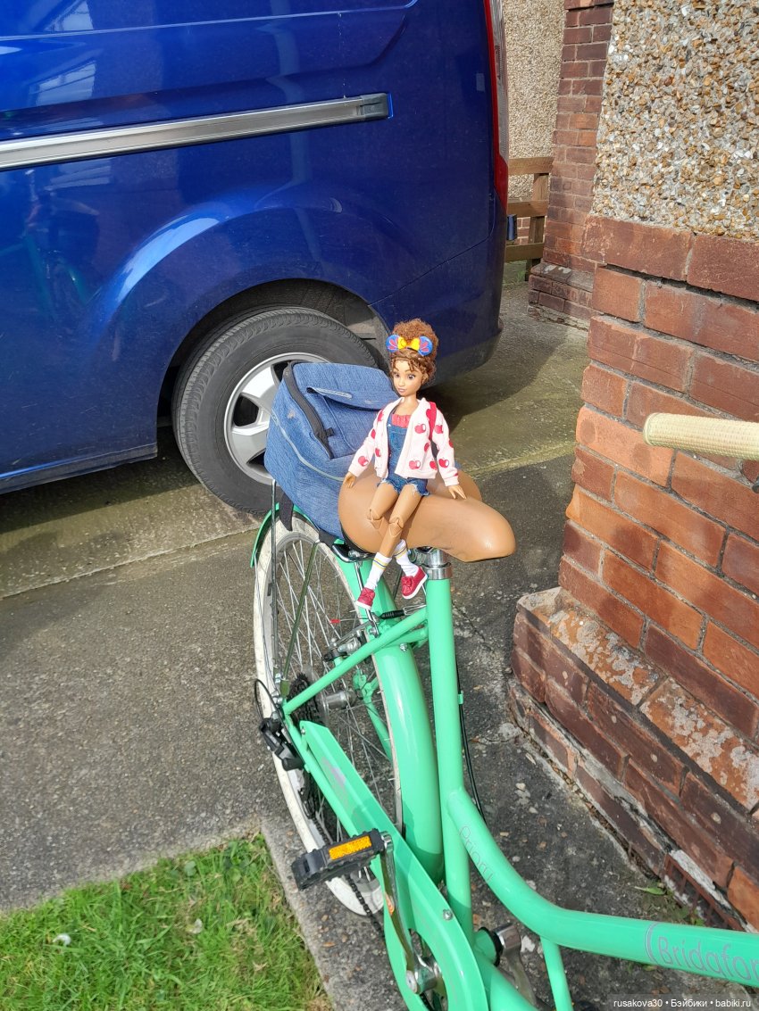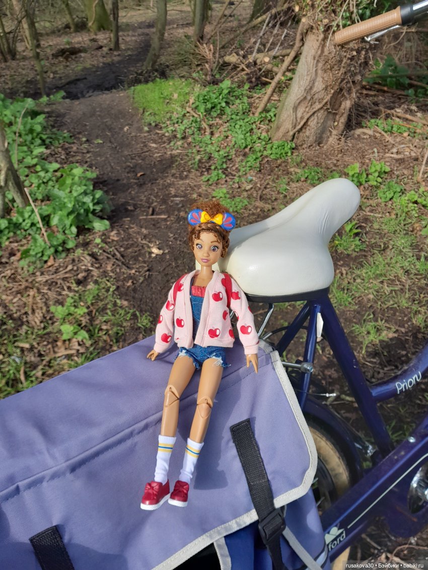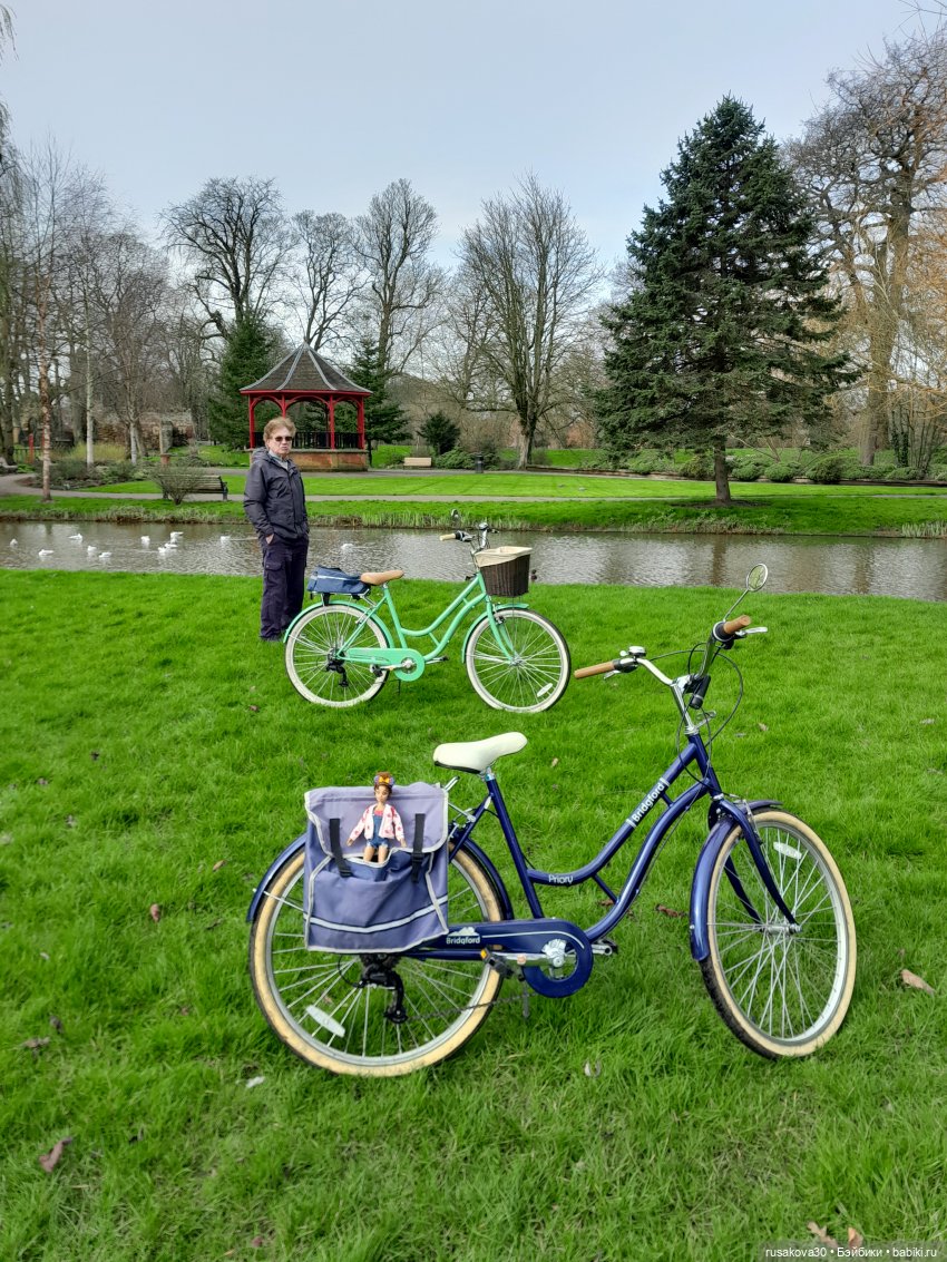 Сегодня у нас + 11, нет дождя и даже солнышко немного светит. Вот мы и поехали кататься на великах.