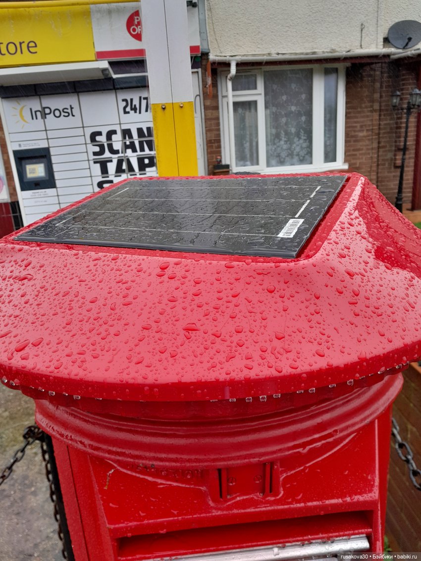 На крыше почтового ящика есть солнечная батарея.